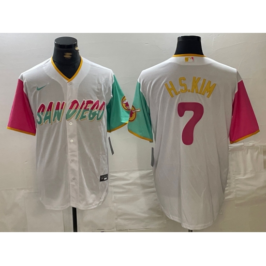 >Men's San Diego Padres #7 Ha Seong Kim White 2023 City Connect Cool Base Stitched Jersey