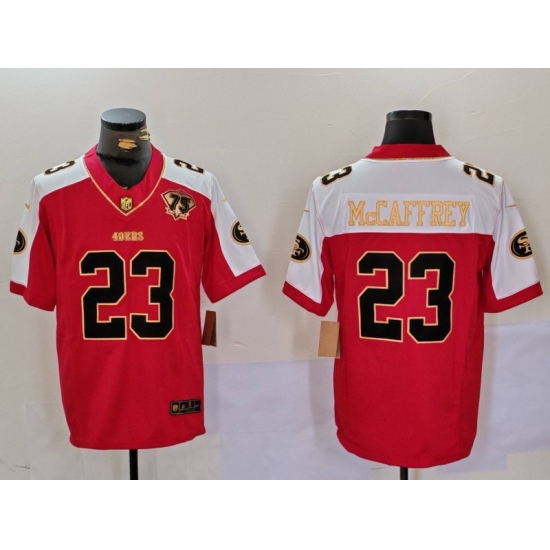 Men's San Francisco 49ers #23 Christian McCaffrey Red Black With Cool Base Baseball Stitched Jersey