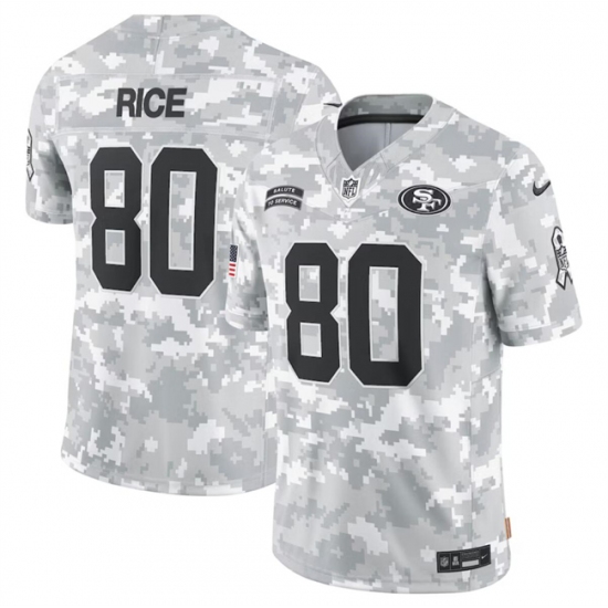 >Men's San Francisco 49ers #80 Jerry Rice 2024 Arctic Camo Salute To Service Limited Stitched Football Jersey