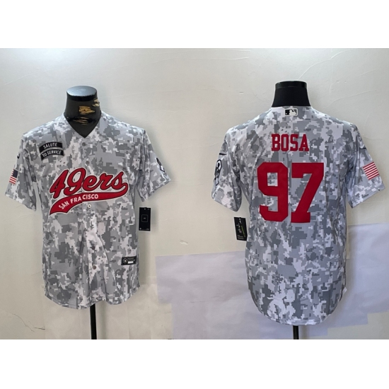 >Men's San Francisco 49ers #97 Nick Bosa Arctic Camo 2024 Salute to Service Stitched Baseball Jersey