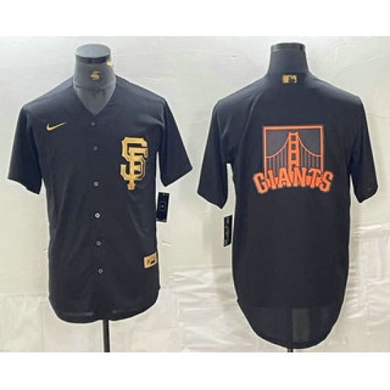 >Men's San Francisco Giants Team Big Logo Black Gold Cool Base Stitched Baseball Jersey