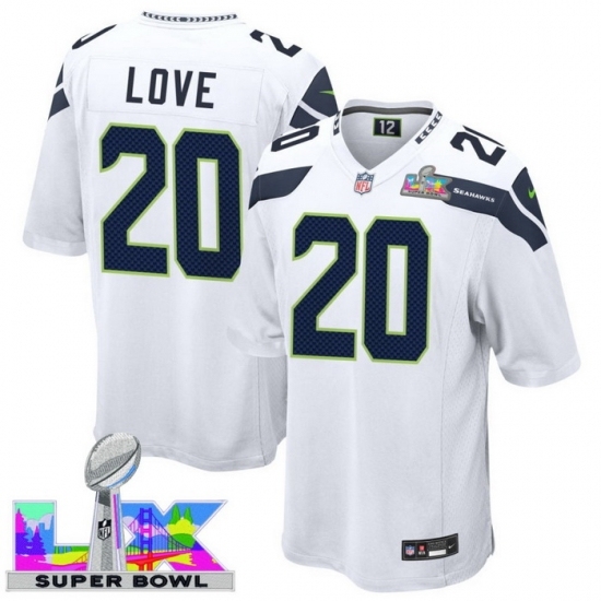 >Men's Seattle Seahawks #20 Julian Love White 2025 2026 Super Bowl LX F U S E Stitched Jersey
