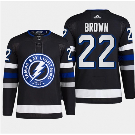 >Men's Tampa Bay Lightning #22 Logan Brown Black 2024 Stadium Series Stitched Jersey