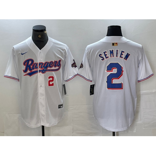 Men's Texas Rangers #2 Marcus Semien Number White 2023 World Series Champions Cool Base Jerseys