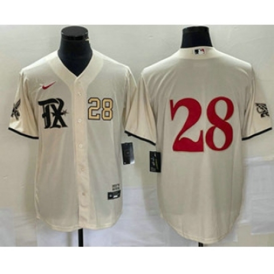 Men's Nike Texas Rangers #28 Jonah Heim Number Cream 2023 City Connect Flex Base Stitched Baseball Jersey
