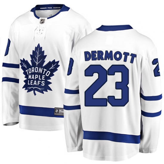 Men's Toronto Maple Leafs #23 Travis Dermott Authentic White Away Fanatics Branded Breakaway NHL Jersey