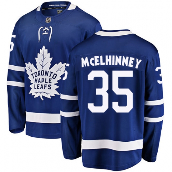 Men's Toronto Maple Leafs #35 Curtis McElhinney Fanatics Branded Royal Blue Home Breakaway NHL Jersey