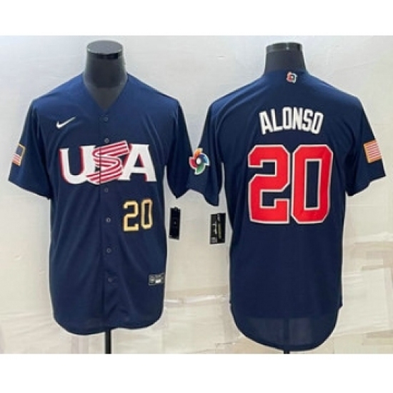 Men's USA Baseball #20 Pete Alonso Number 2023 Navy World Baseball Classic Stitched Jerseys