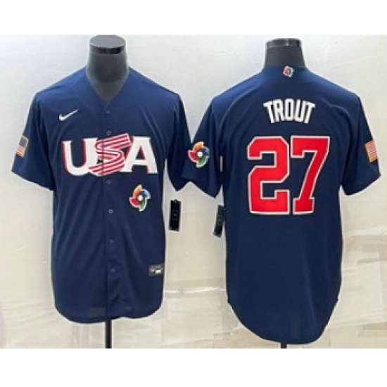 Men's USA Baseball #27 Mike Trout 2023 Navy World Baseball Classic Stitched Jersey