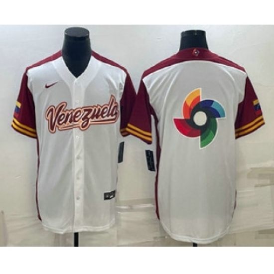 Men's Venezuela Baseball 2023 White World Big Logo Classic Stitched Jerseys