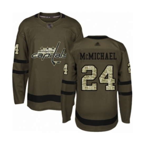 >Men's Washington Capitals #24 Connor McMichael Authentic Green Salute to Service Hockey Jersey