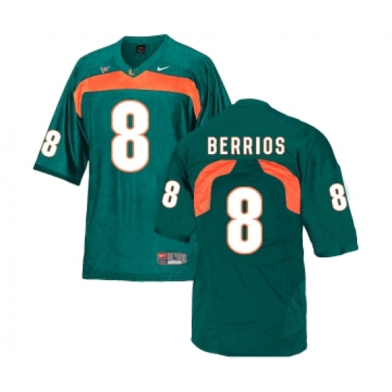 >Miami Hurricanes 8 Braxton Berrios Green College Football Jersey
