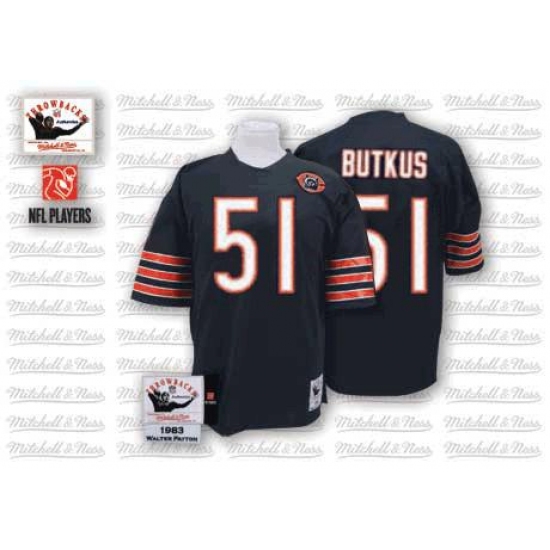 Feel like part of your favorite team by wearing this NFL® Mitchell And Ness Chicago Bears #51 Dick Butkus Authentic Jersey Blue Team Color Big Number with Bear Patch Authentic Throwback NFL Jersey, made of thick, high-quality Pro-Brite fabric for a genuine gridiron look. The players number which 100% stitched is displayed in tackle twill on the chest, back and sleeves, along with the team name on the front. The players name which 100% stitched is displayed on a sewn-down nameplate at the back. 100% Pro-Brite nylon and 100% Pro-Brite polyester for body, 100% lycratalic spandex dazzle for Side Panels/Collar/Cuffs, NFL® Equipment patch sewn on the bottom of the front collar or fabric insert, NFL® Equipment jock tag with numeric sizing is applied to the lower left bottom of the jersey, Officially licensed