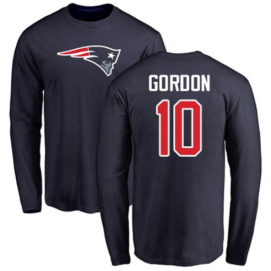 >NFL Nike New England Patriots #10 Josh Gordon Navy Blue Name & Number Logo Long Sleeve T-Shirt