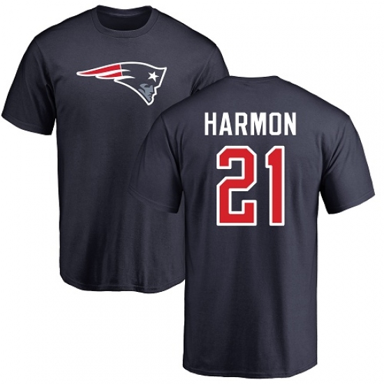 NFL Nike New England Patriots #21 Duron Harmon Navy Blue Name & Number Logo T-Shirt