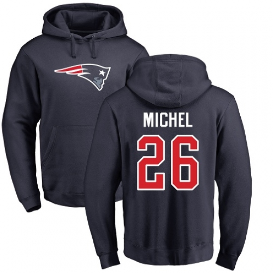 NFL Nike New England Patriots #26 Sony Michel Navy Blue Name & Number Logo Pullover Hoodie