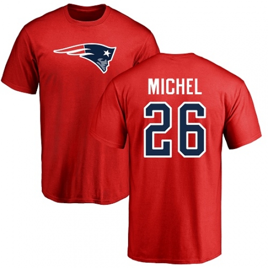 NFL Nike New England Patriots #26 Sony Michel Red Name & Number Logo T-Shirt