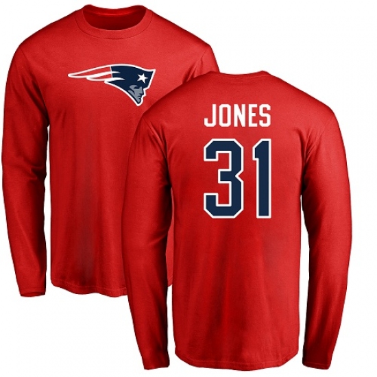 NFL Nike New England Patriots #31 Jonathan Jones Red Name & Number Logo Long Sleeve T-Shirt