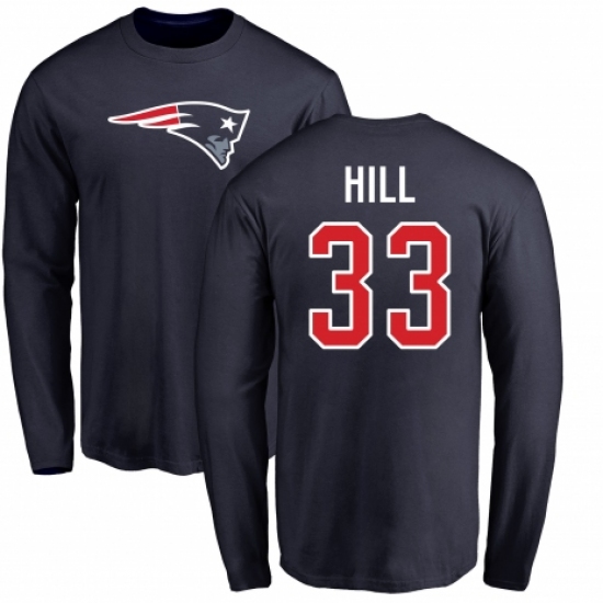 >NFL Nike New England Patriots #33 Jeremy Hill Navy Blue Name & Number Logo Long Sleeve T-Shirt