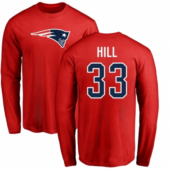 >NFL Nike New England Patriots #33 Jeremy Hill Red Name & Number Logo Long Sleeve T-Shirt