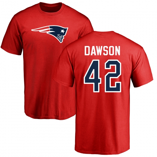 >NFL Nike New England Patriots #42 Duke Dawson Red Name & Number Logo T-Shirt