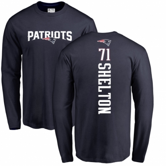 NFL Nike New England Patriots #71 Danny Shelton Navy Blue Backer Long Sleeve T-Shirt