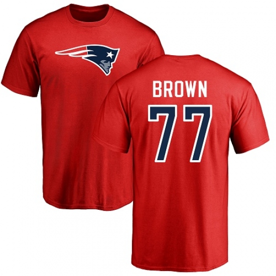 >NFL Nike New England Patriots #77 Trent Brown Red Name & Number Logo T-Shirt