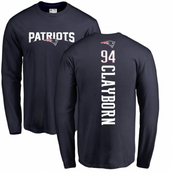 >NFL Nike New England Patriots #94 Adrian Clayborn Navy Blue Backer Long Sleeve T-Shirt