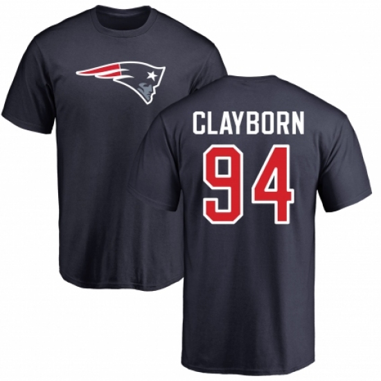 NFL Nike New England Patriots #94 Adrian Clayborn Navy Blue Name & Number Logo T-Shirt