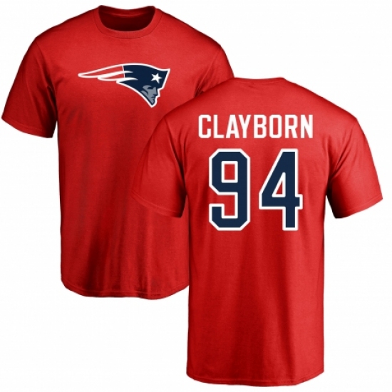 >NFL Nike New England Patriots #94 Adrian Clayborn Red Name & Number Logo T-Shirt