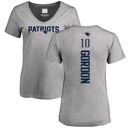 >NFL Women's Nike New England Patriots #10 Josh Gordon Ash Backer V-Neck T-Shirt