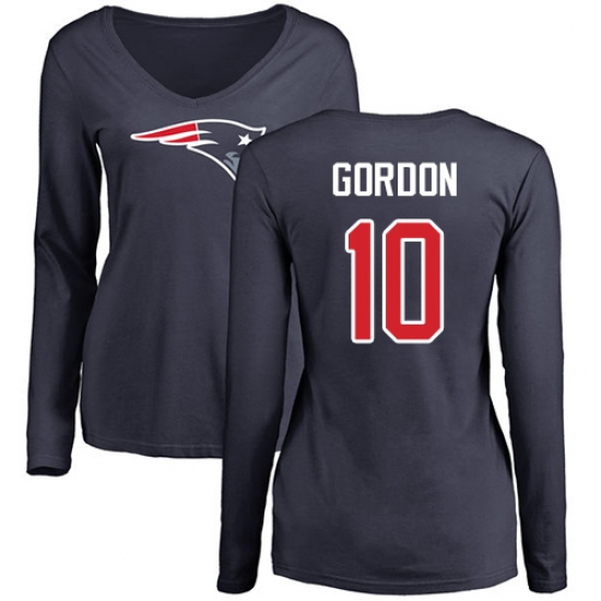 NFL Women's Nike New England Patriots #10 Josh Gordon Navy Blue Name & Number Logo Slim Fit Long Sleeve T-Shirt