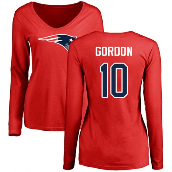 NFL Women's Nike New England Patriots #10 Josh Gordon Red Name & Number Logo Slim Fit Long Sleeve T-Shirt