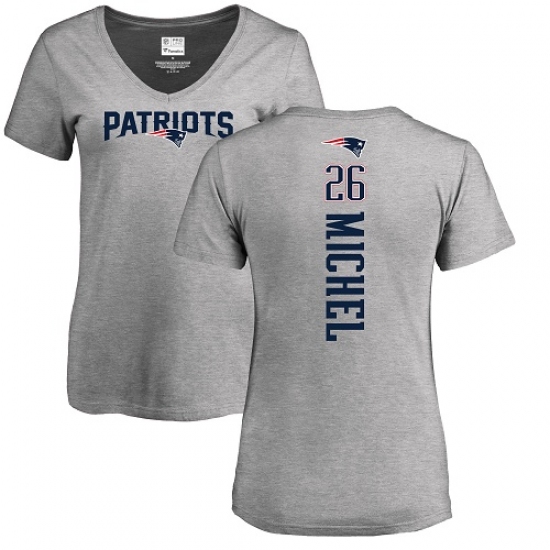 NFL Women's Nike New England Patriots #26 Sony Michel Ash Backer V-Neck T-Shirt