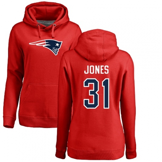 >NFL Women's Nike New England Patriots #31 Jonathan Jones Red Name & Number Logo Pullover Hoodie