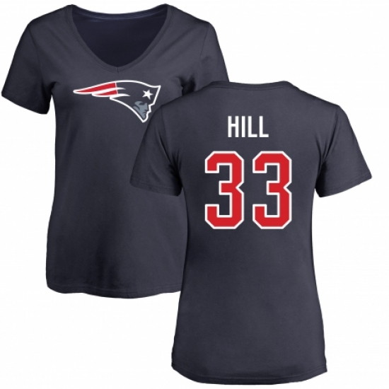 >NFL Women's Nike New England Patriots #33 Jeremy Hill Navy Blue Name & Number Logo Slim Fit T-Shirt