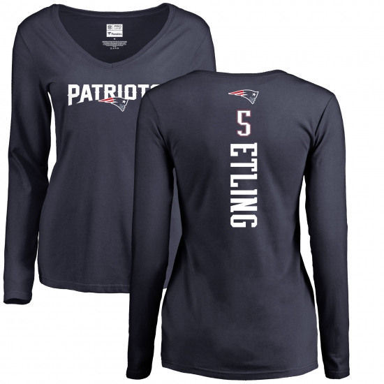 >NFL Women's Nike New England Patriots #5 Danny Etling Navy Blue Backer Slim Fit Long Sleeve T-Shirt