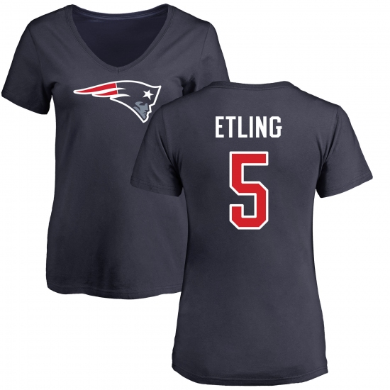 >NFL Women's Nike New England Patriots #5 Danny Etling Navy Blue Name & Number Logo Slim Fit T-Shirt