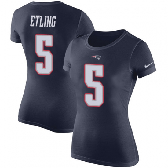 NFL Women's Nike New England Patriots #5 Danny Etling Navy Blue Rush Pride Name & Number T-Shirt