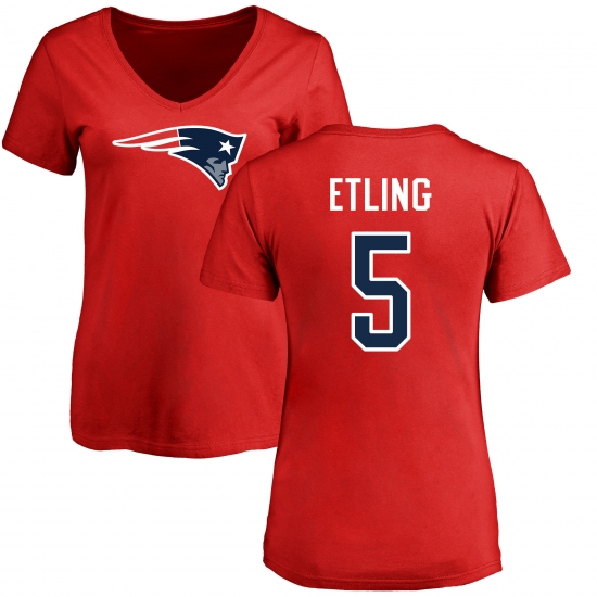 >NFL Women's Nike New England Patriots #5 Danny Etling Red Name & Number Logo Slim Fit T-Shirt
