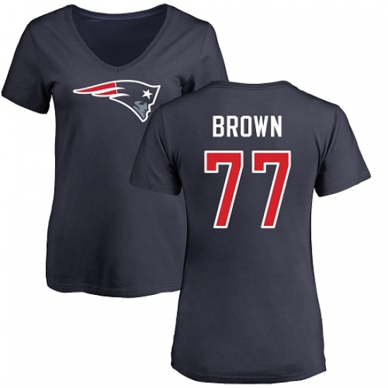 NFL Women's Nike New England Patriots #77 Trent Brown Navy Blue Name & Number Logo Slim Fit T-Shirt