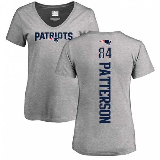 >NFL Women's Nike New England Patriots #84 Cordarrelle Patterson Ash Backer V-Neck T-Shirt