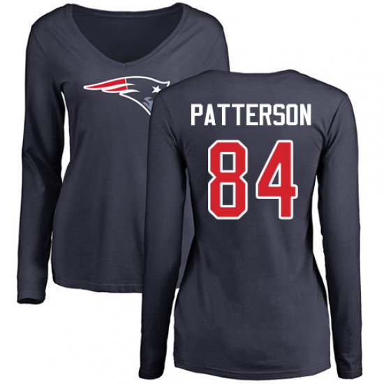 NFL Women's Nike New England Patriots #84 Cordarrelle Patterson Navy Blue Name & Number Logo Slim Fit Long Sleeve T-Shirt