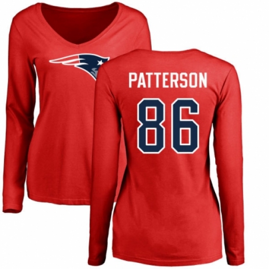 NFL Women's Nike New England Patriots #86 Cordarrelle Patterson Red Name & Number Logo Slim Fit Long Sleeve T-Shirt