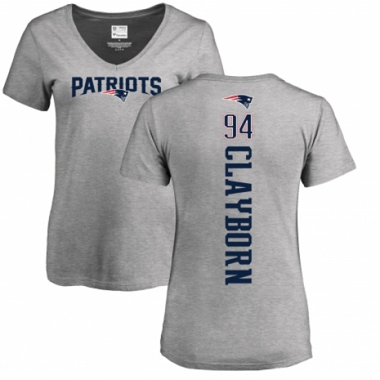 >NFL Women's Nike New England Patriots #94 Adrian Clayborn Ash Backer V-Neck T-Shirt
