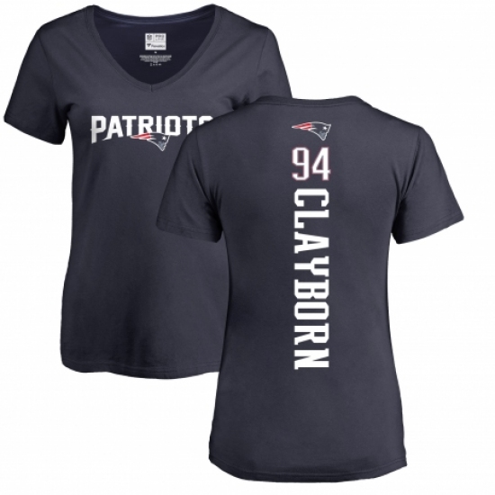 >NFL Women's Nike New England Patriots #94 Adrian Clayborn Navy Blue Backer T-Shirt