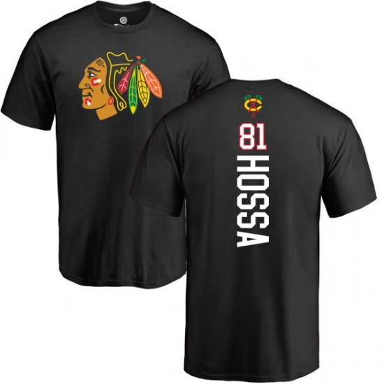>NHL Adidas Chicago Blackhawks #81 Marian Hossa Black Backer T-Shirt