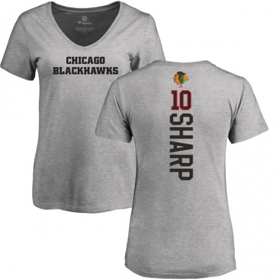 >NHL Women's Adidas Chicago Blackhawks #10 Patrick Sharp Ash Backer T-Shirt