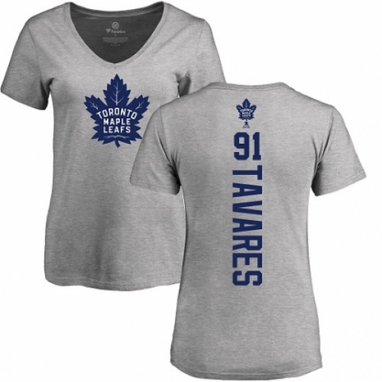 >NHL Women's Adidas Toronto Maple Leafs #91 John Tavares Ash Backer T-Shirt