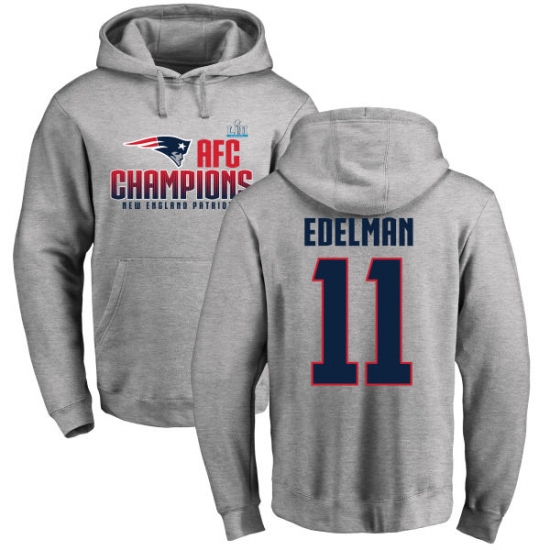 Nike New England Patriots #11 Julian Edelman Heather Gray 2017 AFC Champions Pullover Hoodie